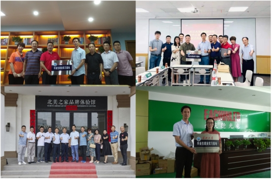 在调研走访的过程中,学院领导和老师看望了在企业工作的毕业生,与用人单位相关负责人进行座谈和交流。在走访东莞铭晋家具有限公司的过程中,参观了“北美之家”家具系列产品,在座谈和交流的过程中,用人单位负责人介绍了企业的生产、研发、销售、服务以及行业发展大环境。程坤老师介绍了学院2021届毕业生的整体情况和外语类专业毕业生的就业情况,并表示将持续加强与企业的联系,加强对毕业生的指导和服务,做好用人单位和毕业生之间的桥梁纽带。随访的专业老师还就科研合作、联合培养、课程实习和实践教学等方面与企业进行了的探讨,双方表达了进一步推进院企合作以及校企合作的强烈愿望。本次走访还与四家企业签订了“必赢bwin官方网站就业实习基地”合作意向书,并举行了授牌仪式。