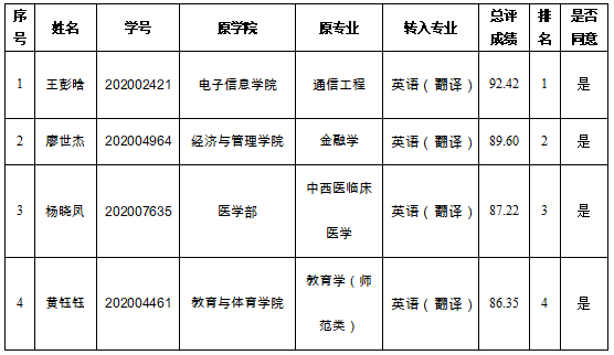 必赢bwin官方网站2020级本科生秋季学期转专业拟接收名单公示