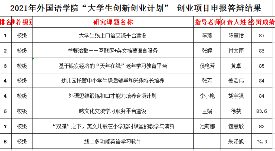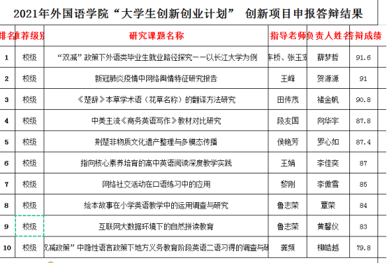 2021年必赢bwin官方网站“大学生创新创业计划” 项目立项结果公示