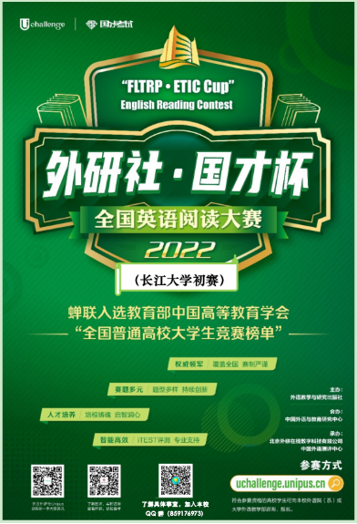 2022“外研社•国才杯”全国英语阅读大赛火热报名中!该赛事不收取报名费,含金量高,蝉联入选教育部中国高等教育学会“全国普通高校大学生竞赛榜单”。欢迎必赢bwin官方网站在校本科生及研究生踊跃报名。