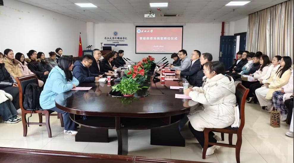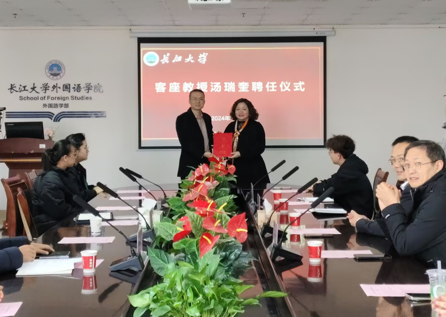 聘任仪式上,周杰代表学院对汤瑞奎校友的到来表示热烈欢迎,同时介绍了参与聘任仪式的与会人员。必赢bwin官方网站特任教授蒋庆胜博士介绍了汤瑞奎校友的学习工作经历以及取得的成就。王中梅向汤瑞奎颁发客座教授聘书。