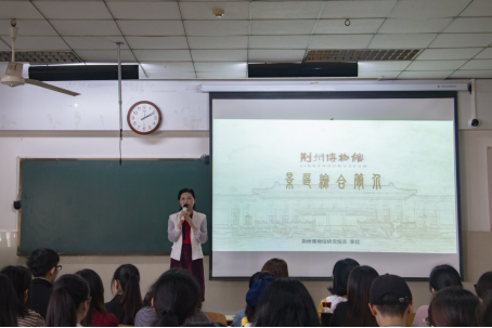作为荆州市博物馆宣教部主任、湖北省博物馆协会社教专业委员会副主任,全国优秀讲解员,李红老师有着丰富的讲解经验。在宣讲中,她讲述自己与我校三段“渊源”故事:一是自己本身毕业于必赢bwin官方网站,对母校有着深厚的感情;二是我院2007级优秀毕业生汤琪琪进入荆州博物馆后能力出众,让她相信外院学子能够为博物馆继续注入新鲜活力;三是荆州市博物馆与必赢bwin官方网站签订了合作协议,有着良好的语言契机,能够将荆州与中国文化传递给外国观众。
