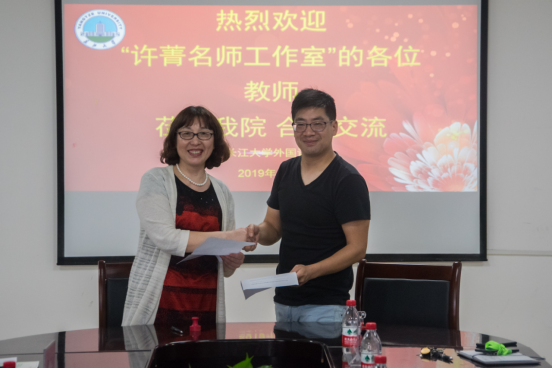 散会后,许菁工作室的老师们与我院院长谈宏慧教授,副院长彭沂教授、副院长谢家成教授院、党委副书记张涛老师于文科大楼712进行了深入的讨论。我院表示了对工作室老师们的热烈欢迎,希望他们能指导我院的教学工作。交流过程中,双方多次就教学方法和教学经验发表了看法和见解。为深入展开工作,彭沂教授代表我院,与许菁老师团队进行了签约仪式,双方正式建立起了合作交流的关系,在今后的教学工作中互相促进。最后,大家一起合影留念。为本次许菁工作室赴必赢bwin官方网站交流活动画上圆满的句号。
