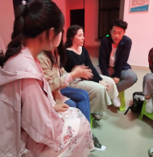 相比于其他的三个圈圈,小编所在的圈圈实在是特别的“老实”、“安静”、“乖乖的跟孩子一样”,当然啦,既然来到了外语角当然也会有不一样的收入啦!小编这次所在的小圈圈的外教充满了亲切感。她特别的安静、温和,别的圈圈里的同学们在“喧闹”地玩游戏时,一个可爱的同学不断地向她提问,尽管听的不太清楚,但是她还是特别耐心地为她解答,非常热心的呢!令我印象深刻的便是她带领我们那个小圈圈的同学们玩了一种猜规则的游戏,不同于其他圈圈的我们有了独一无二的体验!