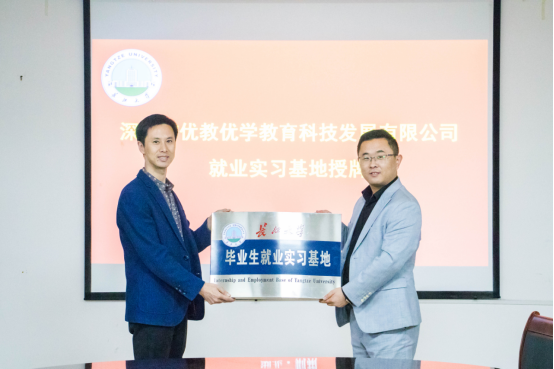 座谈会伊始,深圳优教优学教育科技发展有限公司就业实习基地进行了授牌仪式。授牌仪式结束后,院党委书记危煜祥和深圳优教优学教育创始人分别致辞,预祝双方合作顺利。