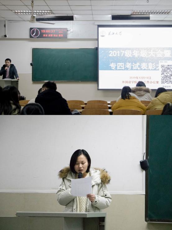 (文/肖慧洁 牟清翼 摄/袁缘 )1219日晚七点,在12202室举行了必赢bwin官方网站2017级年级大会暨专四考试表彰大会。本次大会由辅导员车桥老师主持,出席大会的有党委副书记魏红洁以及2017级全体同学。