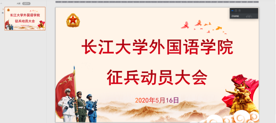 为进一步增强大学生的国防意识,激发同学们的爱国情怀,激励广大青年学子携笔从戎,积极投身国防事业,外国语学院于5月16日举行了2020年线上征兵动员大会。我院辅导员车桥老师、退伍学生代表耿传令及全体男生参加了本次动员大会。本次会议由车桥老师主持。