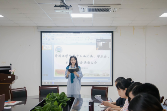 (摄/袁缘 罗娜  文/韩思洁 范期明)为保障学生会工作的连续性,更好的贯彻落实学院的指示精神,充分发挥学生会的职能。9月10日下午14时,我院在文科大楼712室举行了必赢bwin官方网站第十五届团委、学生会、社团联合会换届大会。由于我校疫情防控要求,此次会议采取线上线下同时进行的模式。出席此次大会的有党委副书记魏红洁,团委书记许泽琼,辅导员车桥,杜岳青老师以及学生会主要学生干部。本次会议的主持人为第一团委副书记兼学生会主席李梓雯。