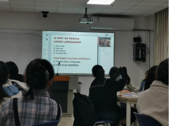 师生间的互动交流结束后,Bob老师继续给学生们上课,同学们在外教老师关于文化重要性的讲解中度过。