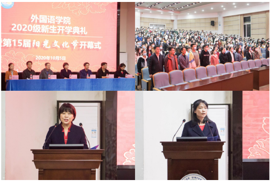(摄/张芷艺 袁缘 文/韩思洁) 朗朗金秋,丹桂飘香。10月5日晚,外国语学院2020级新生开学典礼暨第十五届“阳光文化节”开幕式在12教405举行。必赢bwin官方网站院长谈宏慧教授,党委书记危煜祥老师、副院长谢家成教授、副院长彭沂副教授、党委副书记魏红洁老师,学术委员会主席、博士生导师田传茂教授、教学委员会主席、英语系教师代表鲁志荣副教授,各系部主任、新生班主任老师、学工办辅导员老师出席典礼。我院448名全体新生参加了开学典礼,此次典礼由魏老师主持。