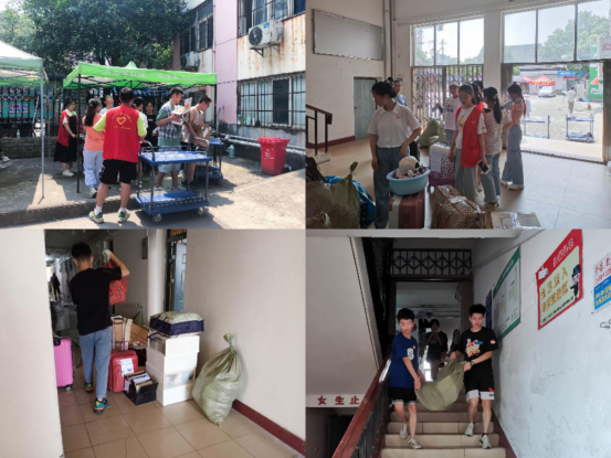 早晨七时三十分,志愿者们在汉科学苑五栋楼下集合。阳光号列车负责人统筹协调好各项工作后,志愿者们便开展了有条不紊的工作。打包物品、推车运输、搬运上楼,大家分工明确。即使头顶灼灼烈日,汗如雨下,仍然尽心尽力完成工作。正因志愿者们热心的帮助,使得本次搬迁工作的顺利进行,志愿者们也收到了同学们真挚的感谢。