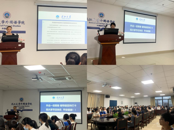 会上,辅导员伍世英老师对如何做好中秋、国庆期间研究生安全教育管理工作的通知进行了解读,其中包括当前疫情防控形势政策,中秋、国庆的放假安排以及相关请假销假流程等。
