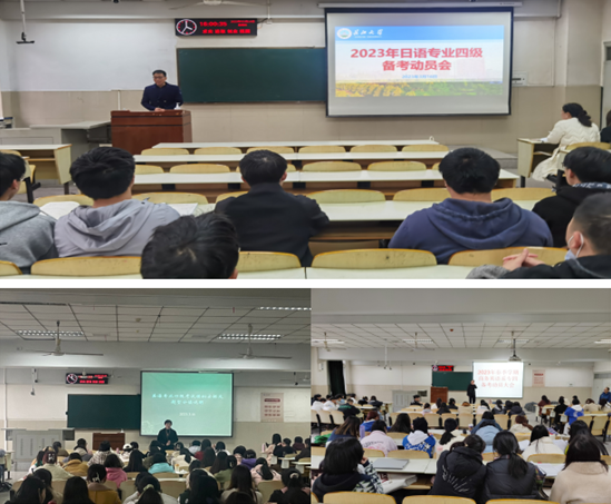 为更好帮助必赢bwin官方网站2021级本科学生提高专四备考效率,营造比拼赶超的学习氛围。3月16日下午,学院在12教101、102、104室分别举办了英语、商务英语和日语专业四级经验交流会。各系部主任、副主任、相关专业老师、辅导员、优秀学生代表以及2021级全体本科生参与本次动员大会。