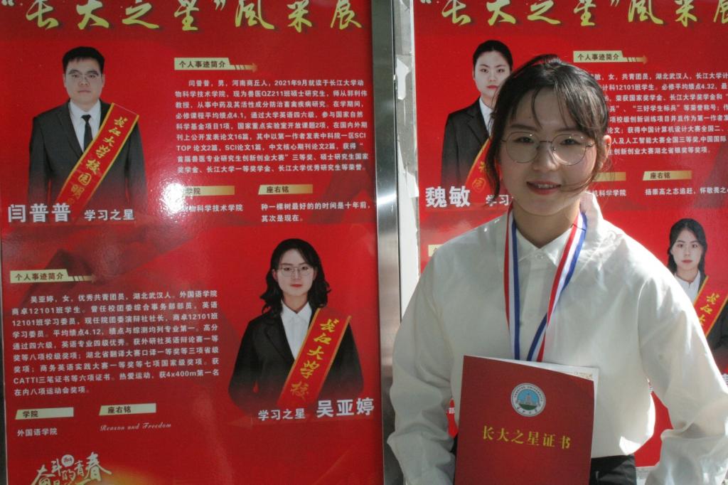 在大家眼中,我是一个“六边形战士”。做着自己热爱的事,尝试别人不敢尝试的事。喜欢音乐,我就自学吉他并在支教时教孩子们弹吉他;喜欢运动,我就参加运动会,获得了“4x400”第一名,“女子800”第二名等八项奖项,并作为运动员代表致辞。我还分别参加了襄阳马拉松的半马和荆州马拉松的全马;喜欢旅游,我就一辆山地车,从荆州骑到了宜昌,也一人穷游多座城市,用脚丈量祖国大地。