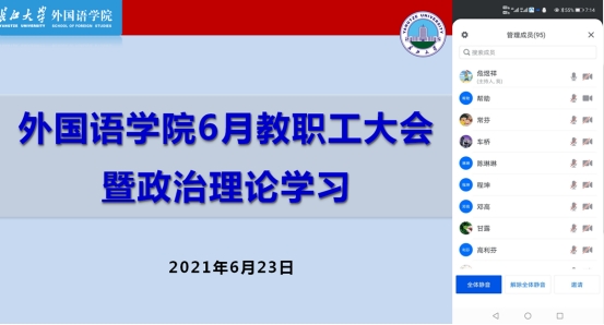 6月23日晚上7点,学院党委通过腾讯会议召开全院教职工大会,开展政治理论集中学习。学习会由院党委书记危煜祥主持。