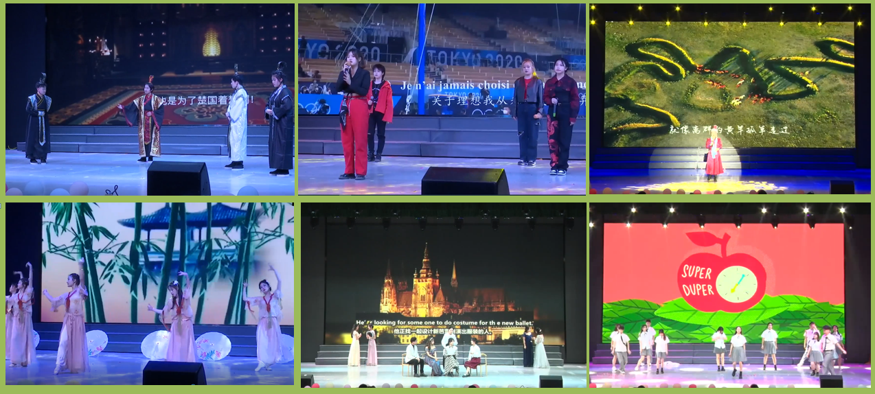 闭幕式文艺汇演在精彩的舞蹈中开场。分为“盛世华章,继往开来,初心难忘谱新曲”“激扬青春,强国有我,英姿奋发正当时”两个篇章。整台晚会彰显特色、突出专业、精彩纷呈,线上观众热情高涨。汉语、英语、日语、俄语、法语5个语种演唱的歌曲《追梦赤子心》,带领观众领略不同语言的魅力;笛萧合奏《无羁》,古风古韵,回味无穷;外文剧团呈现的经典剧作《Midnight in Poris(午夜巴黎)》,地道的英语、绅士且高雅的表演、华丽的场景深深打动着观众们的心;日语配音节目《辉夜姬大小姐》、教师韩艳丽博士倾情演唱的蒙语歌曲《忘不了》等节目全面展示了不同语言的文化底蕴与特色……必赢bwin官方网站师生用丰富的艺术形式展现多彩校园文化生活。颁奖晚会在合唱《光荣啊,中国共青团》中圆满落幕。