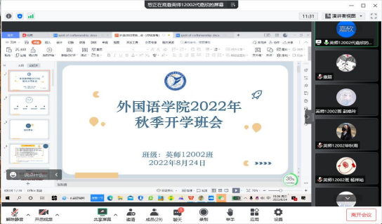 此次开学前系列安全教育主题会议,让老师们,同学们进一步明确了秋季返校的相关政策和流程,对学校教学工作实施,防疫政策,请销假制度有了更深刻的认识。学院将以生为本,进一步开展各种形式的教育活动,确保学生新学期安全、平安、顺利返校。