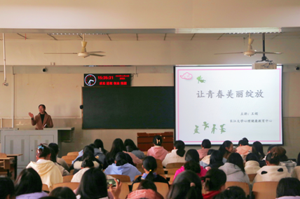 讲座中,王老师从人际交往、恋爱、安全三个方面展开了阐述。对于目前困扰众多学生的人际交往问题,王老师从朱令案出发,强调了寝室关系的重要性,并且指出:维护寝室关系,人人有责。在恋爱方面,她从阳光和阴暗两个方面,指出不同恋爱关系带来的不同结果;她通过几个负面例子警示同学们,告诉同学们要树立正确的爱情观;她还给同学们科普了一些关于性方面的知识,教育在场的女生们如何保护自己。在安全方面,王老师列举了几起女大学生校外遇害的案例,阐述了这种现象发生的原因,进而提醒女生校外出行时更应增强安全防范意识。
