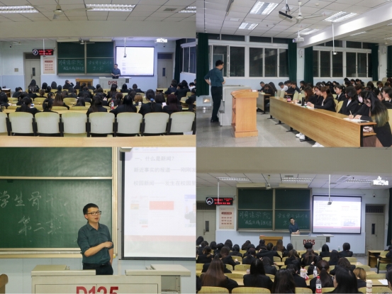 杨老师首先向在座的同学们抛出了一个引人深思的问题:“新闻的六要素是什么?”随后,他结合自己的工作经验,从新闻的概念、类型、选题、采写等方面入手,深入浅出地讲解了新闻写作的基本框架和要点。他强调,新闻写作不仅要注重客观事实,更要关注读者的阅读需求,抓住他们的兴趣点。在谈到新闻结构时,杨老师详细介绍了倒金字塔式、金字塔式、华尔街日报式以及悬念式等多种写作结构,并通过实例分析,让同学们深刻感受到不同结构在新闻写作中的巧妙运用和独特魅力。
