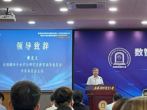 7月6日上午,上海对外经贸大学举办盛大的颁奖典礼,同时举办“数智时代翻译与国际传播人才培养高端论坛”。翻译界专家学者黄友义教授等现场颁奖。翻译界专家与行业精英共话翻译与国际传播在国家对外开放战略中的重大意义,共商高端商务翻译与国际传播人才培养的有效路径。获奖选手邹慧芳、毕雨婷及带队老师侯艳芳参加了此次论坛。