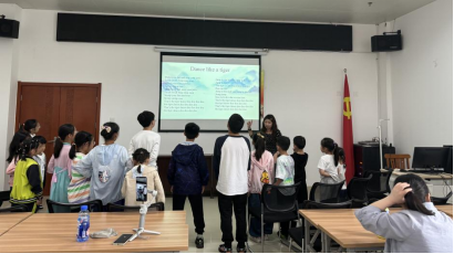 绘本故事将近尾声,主讲老师邀请小朋友们分享了自己的阅读收获与感悟心得,并鼓励孩子们以斗谷于菟为榜样,坚强勇敢面对逆境,学习其精忠报国的优秀品质。最后主讲老师以一曲Dance Like a Tiger(如虎起舞)结尾,在欢乐的气氛中为今天的绘本分享活动画上句号。