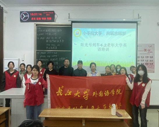“银发助学”——必赢bwin官方网站 “阳光号列车”开展青年红色筑梦之旅之线下“老年大学”英语教学活动
