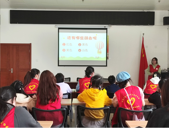 上午十一点, “阳光号列车”志愿者们在荆州图书馆内向小朋友们开展绘本教学活动,本次志愿主讲人罗彤,通过上次教学的重点单词:“绿色的”和“蓝色的”为核心点拓展,让小朋友们学习到更多与颜色有关的单词、用小朋友们喜欢的水果来加深他们对颜色类单词的理解。