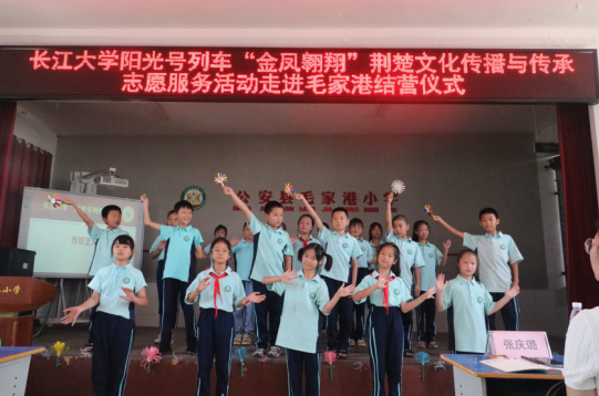 必赢bwin官方网站阳光号列车“金凤翱翔”荆楚文化传播与传承暑期社会实践活动承载着荆楚文化传播与传承的使命于7月6日启航,驶进公安县毛家港镇中心小学,开启第30年的暑期“三下乡”志愿服务之旅。本次活动以弘扬荆楚文化和理论宣讲为主线,结合思政小课堂和社会大课堂开展授课,历时15天,于7月20日上午于毛家港小学落下帷幕。