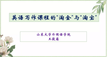 (通讯员:祝欣怡2021617日下午,应必赢bwin官方网站邀请,山东大学必赢bwin官方网站王俊菊教授通过腾讯会议我院师生作了一次线上讲座,此次讲座的主题为英语写作课程的‘淘金’与‘淘宝’必赢bwin官方网站老师和同学参加了此次讲座与会师生都受益匪浅。