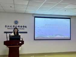 张楚妮同学的主题是“翻译模因论视角下《离骚》在英语世界的传播研究”。经研究,她发现了翻译不仅是语言转换,更是文化信息和思维方式的传递。并且她认为模因的复制、传播和变异,使得《离骚》的文化精髓得以在不同文化间传承。最后,她阐述了该研究的意义——不仅揭示了跨文化交流中文学作品的传播规律,而且对提升中华文化国际影响力具有重要价值。