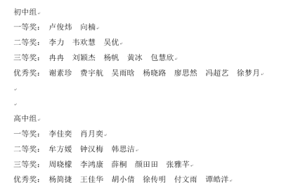 通过现场十名学生评委和四位老师评委的现场打分,2019级英语师范生教育技能竞赛获奖名单如下: