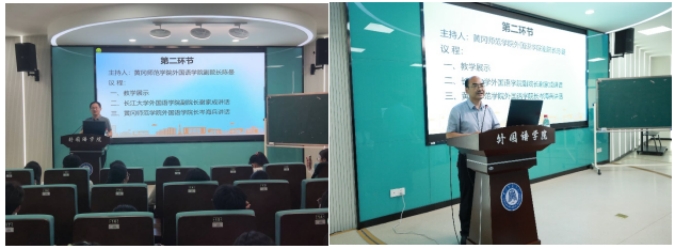 会谈结束后,双方在圆楼外语专业教师发展工作室开展职前英语教师同课异构交流与研讨活动。活动中,周杰表达了对黄冈师范学院必赢bwin官方网站的诚挚谢意,并引用了“独学而无友,则孤陋而寡闻”的古训,强调了交流与合作在教育发展中的重要作用,期望此次活动能够促进双方的相互学习和共同成长。