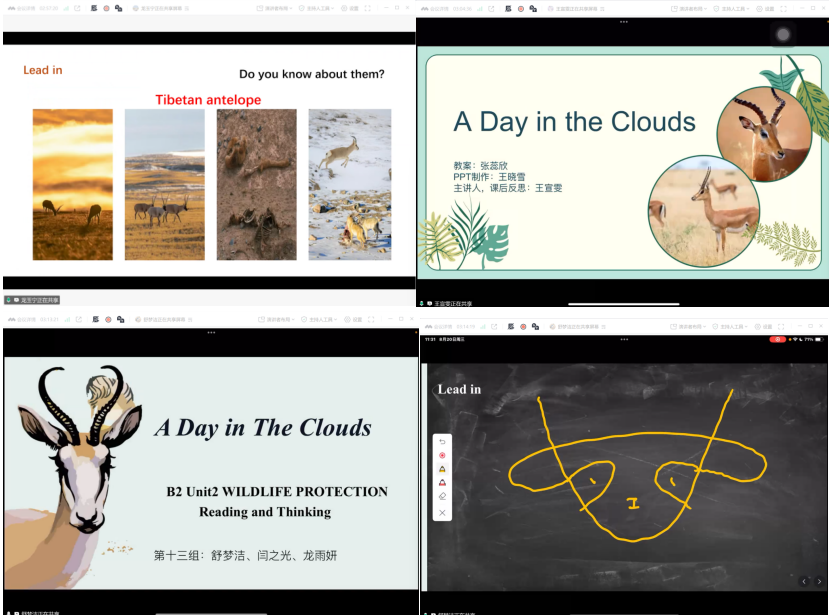 8月20日上午,英语师范12204班通过腾讯会议举行同课异构磨课活动,活动持续三个半小时。全班同学分成13组,每2组或3组围绕同一主题进行同课异构。各小组通过集体备课凝聚智慧,并推选一名代表进行教学展示。
