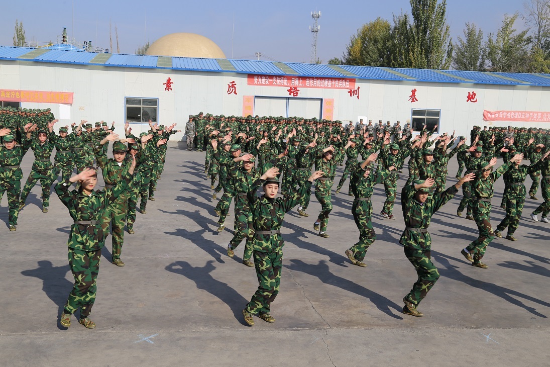 图为部分方队分列式表演 在分列式汇报表演结束后,参训学生们又以建制排为单位,展示了出操表演和汇报科目表演。此次的汇报科目表演,除了常规的会操方队及军体拳方队外,还有新颖的手语操方队和舞蹈方队。会操表演中,矫健威武的气势、纹丝不动的军姿,立正、稍息、跨立、踏步、齐步、跑步和正步等动作的分解表演,无不体现着同学们的辛勤和汗水。军体拳表演中,同学们动作整齐划一、节奏分明、刚劲有力,让我们看到了什么叫铮铮铁骨。在手语操方队和舞蹈方队的表演中,那嘹亮的军歌在空中回荡,用心聆听,似乎还听到了歌声中流露出一种坚定、向上的进取精神。整齐的队列,饱满的精神,嘹亮的军歌,展示了2019级学生的生机与活力,展现了taptap点点学子规范的举止、严明的纪律和昂扬的精神风貌,展示了刻苦拼搏的军训成果。