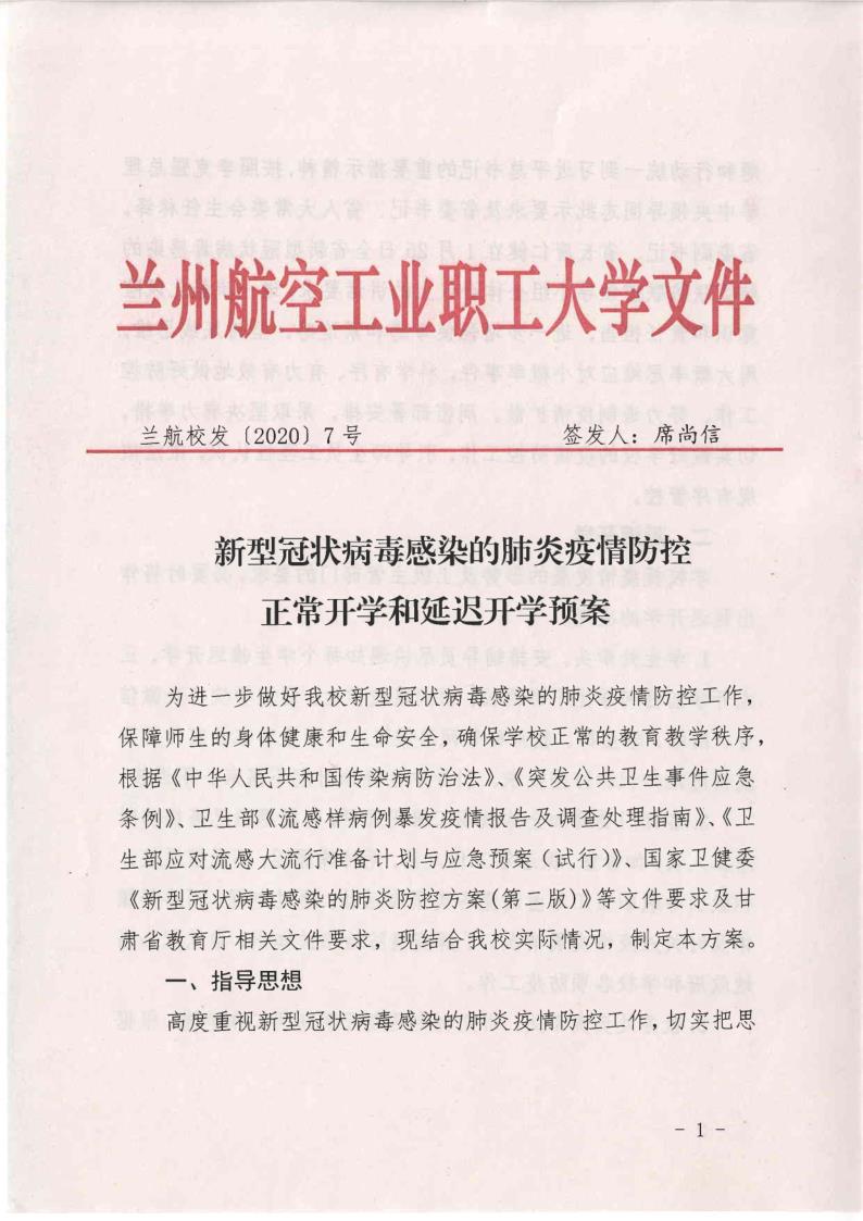 新型冠状病毒感染的肺炎疫情防控正常开学和延迟开学预案