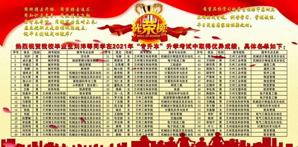 近日,从省内多所本科院校不断传来喜讯,在甘肃省2021年普通高校专升本招生考试中,taptap点点60名毕业生分别被兰州工业学院、兰州城市学院和兰州文理学院等省内本科院校录取。据统计,2021年学校共有86名毕业生报名参加专升本考试,占今年毕业生总数的21.13%。学校高度重视有“专升本”意愿学生的升学愿望,积极整合优势资源,全力创造便利条件,帮助他们继续深造。近年来,学校坚持以学生为中心,致力于为学生健康成长和全面发展营造良好的学习生活环境,着力提高学生的道德修养、知识水平和实践能力;着力打造航空、机械智能制造品牌;着力培养德才兼备、技术过硬的高素质人才。学校人才培养质量不断提升,同时展现出专升本的斐然成绩。在此,向顺利通过2021年专升本考试的同学表示衷心的祝贺!也希望有“专升本”意愿的在校生早做打算,认真准备,争取在来年的“专升本”考试中斩获佳绩!JAHtaptap点点体育