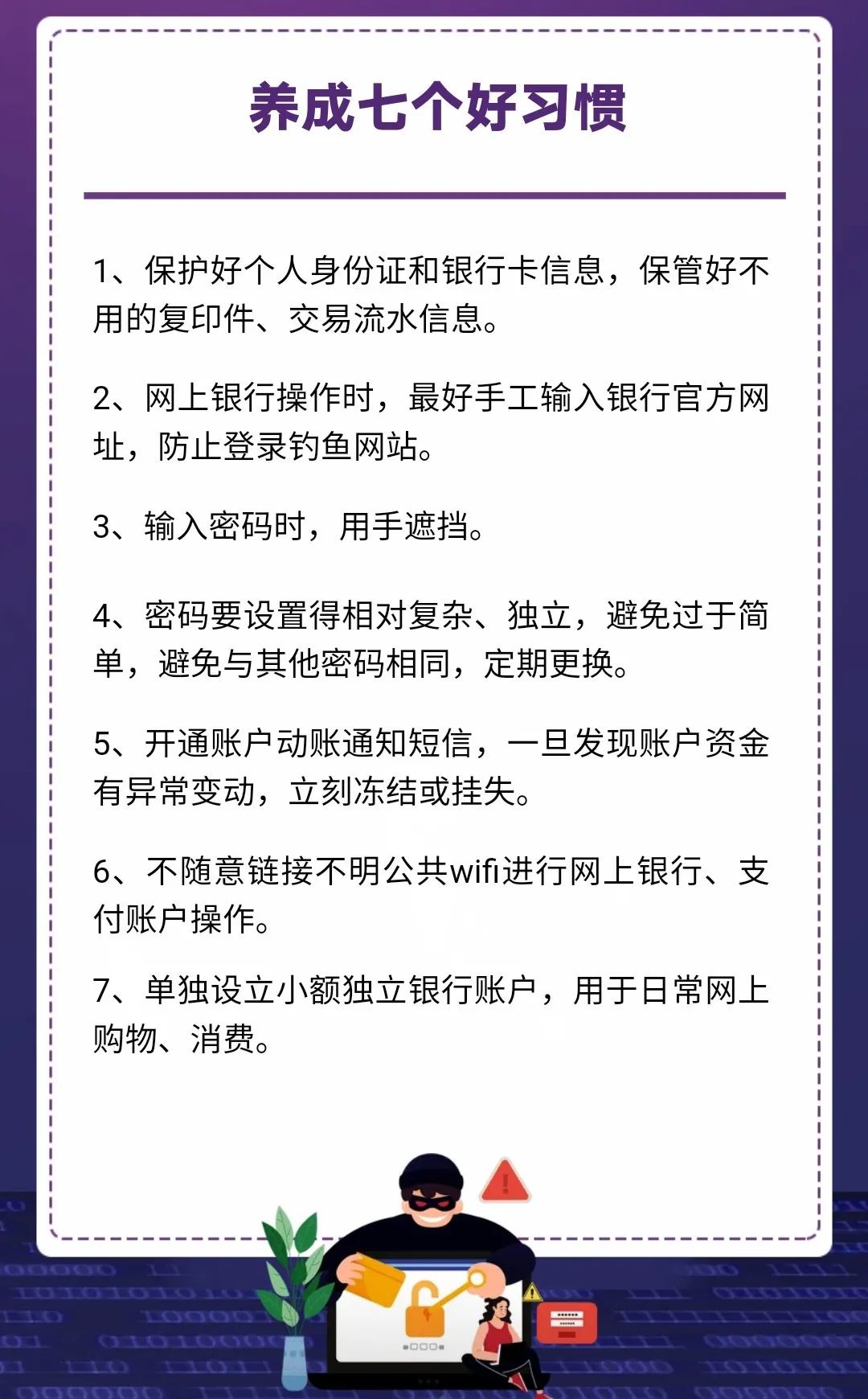 防范工作做到家,一生平安不受骗。4tOtaptap点点体育 开学季,校园诈骗“套路”花样百出,同学们一定要养成七个好习惯,守住校园反诈这一前沿阵地。4tOtaptap点点体育