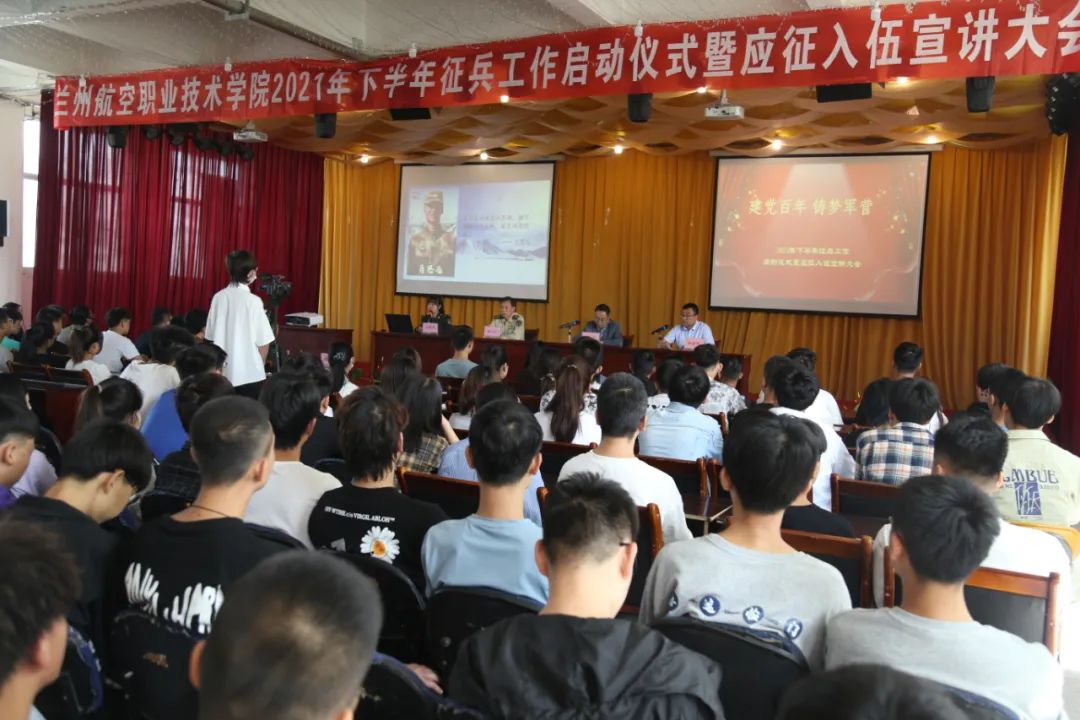 6月3日上午,学校举行2021年下半年大学生征兵工作启动仪式暨征兵宣讲会。安宁区人民武装部部长杨云江出席大会,学校副校长王江出席并讲话,兰州战役纪念馆讲解员王婉茹在会上作了专题党史教育,退役士兵代表郝翰林、杨亚洁、学校2021年预征学生代表2020级空中乘务专业郭兴分别发言。大会由学校武装部部长孙俊男主持,近四百名学生参会了大会。大会在雄壮的国歌声中拉开帷幕。