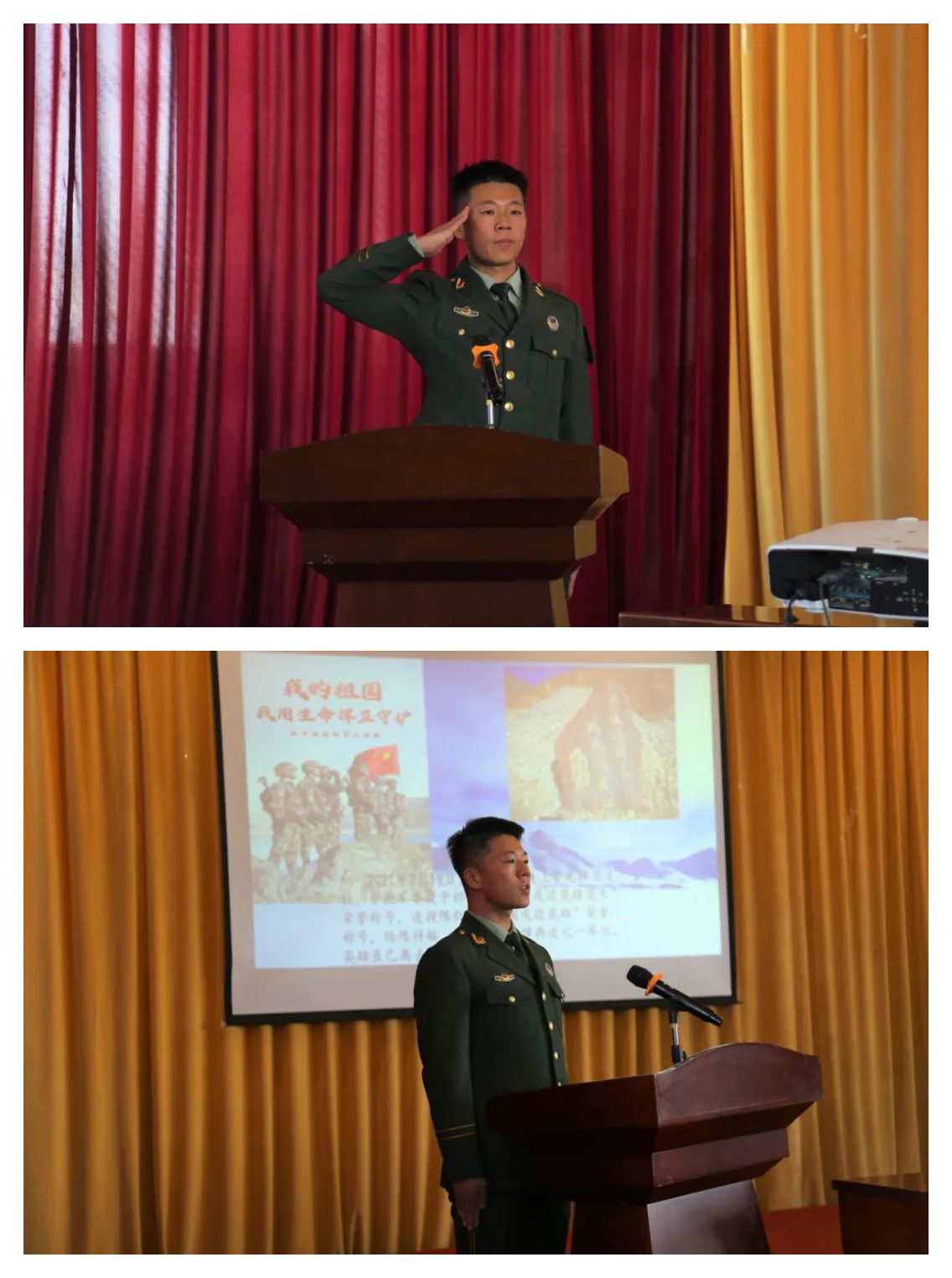 兰州战役纪念馆讲解员王婉茹作了题为《致敬中国边防军人》的专题党史学习教育。她用大量的图片、视频材料,深情讲述戍边英雄的感人事迹,以饱含的热情,动人地讲解,使现场观众深受感动,大受鼓舞。lyktaptap点点体育 退役士兵代表郝翰林、杨亚洁通过个人的军旅经历,向大家讲述自己当年参军入伍的初心,和自己在军队里的收获与成长,以及已深深烙刻于灵魂中的军人印记。