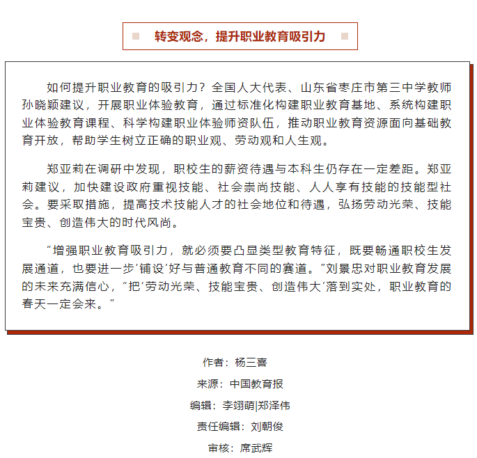 让职业教育真正“香起来”——两会内外热议如何提升职教吸引力