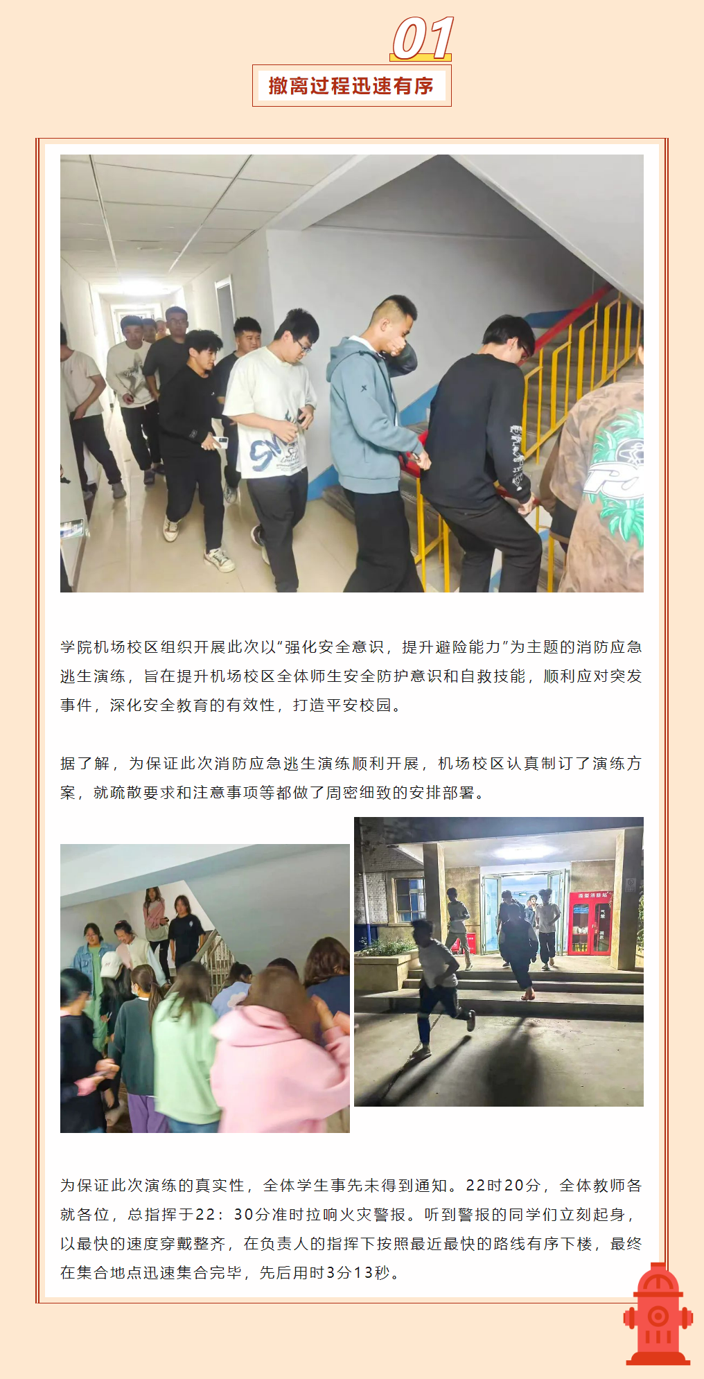 应急有方 临灾不乱 | 学院机场校区开展消防应急逃生演练