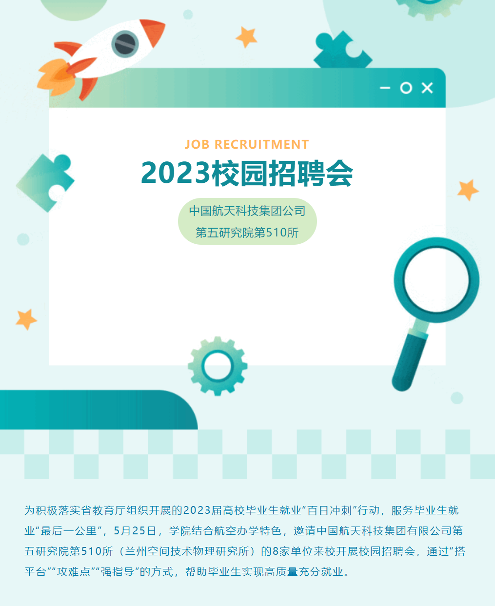 百日冲刺促就业 踔厉奋发建新功—— 学院邀请中国航天科技集团有限公司第五研究院第510研究所举行校园招聘会