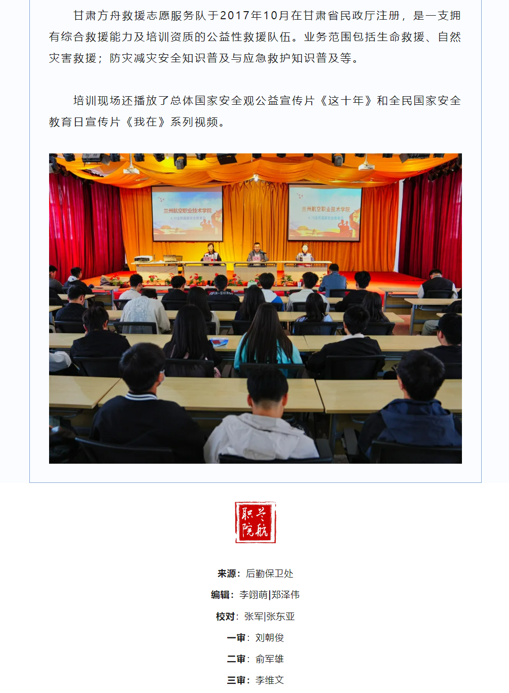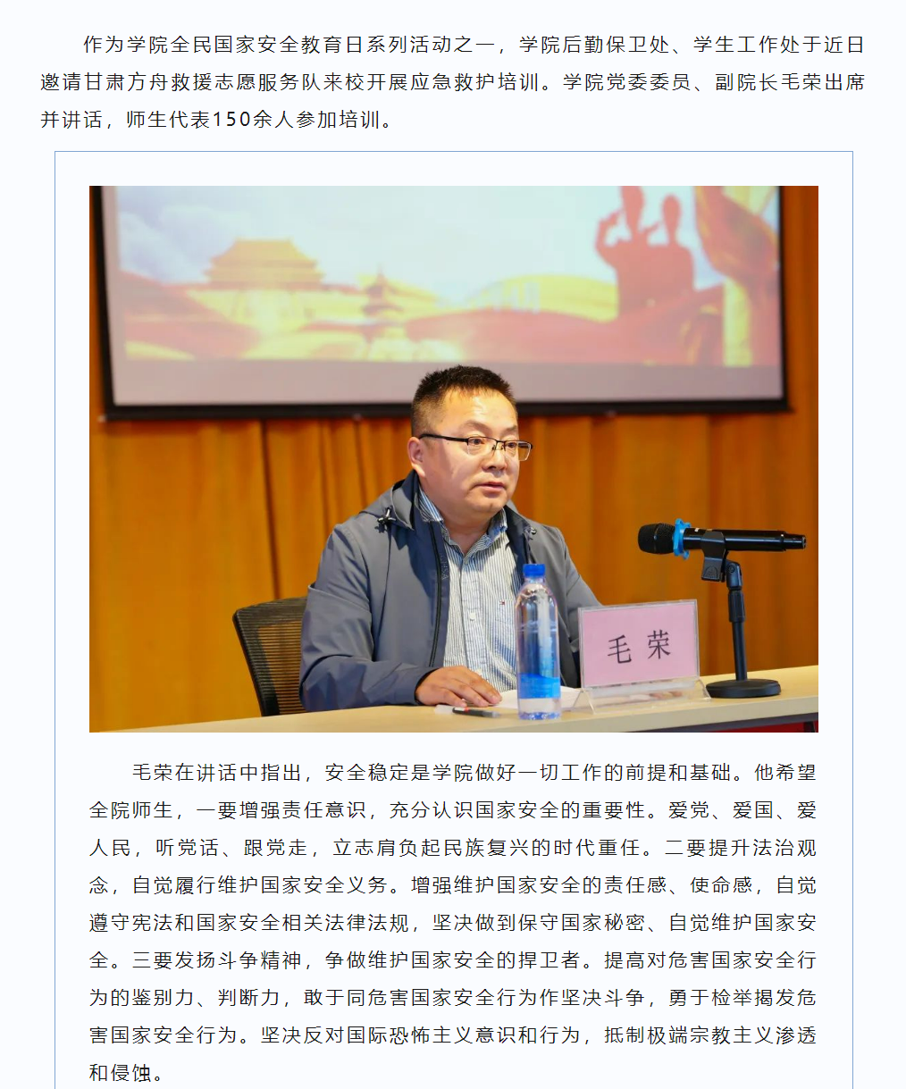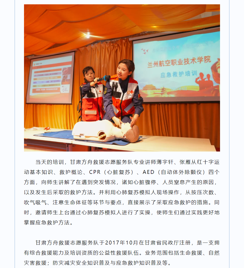 学院邀请甘肃方舟救援志愿服务队开展应急救护培训