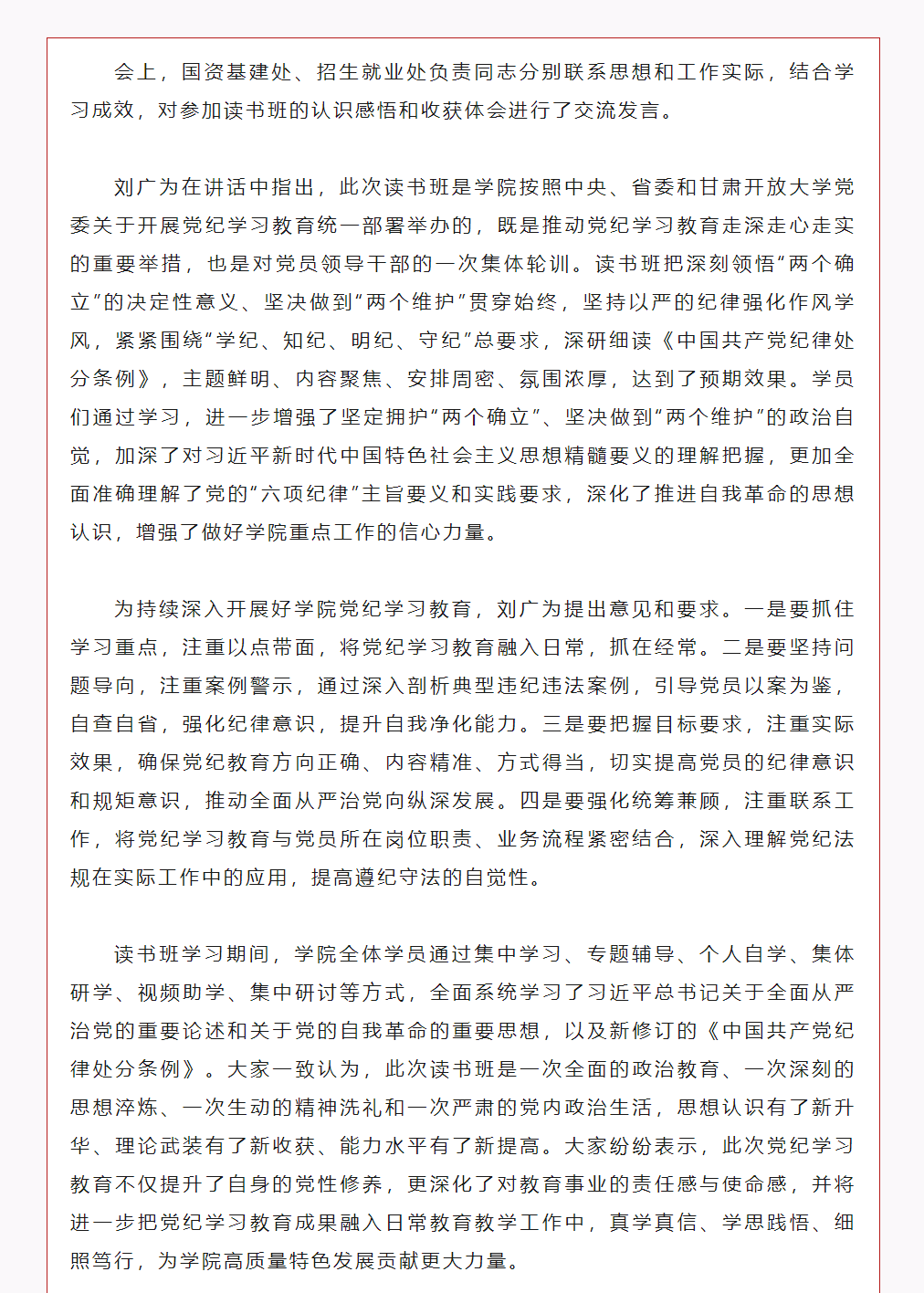 学院举行党纪学习教育读书班结业式