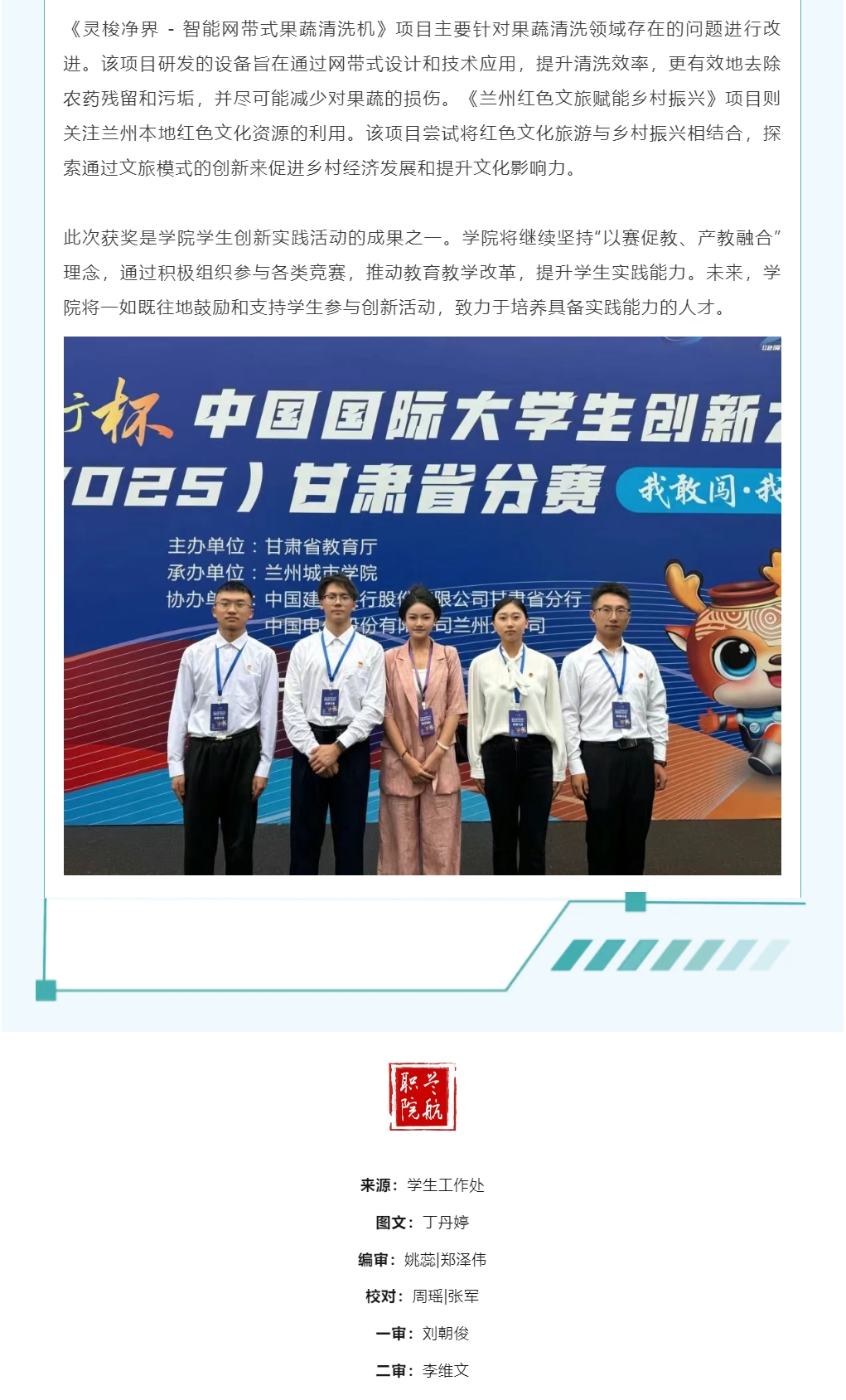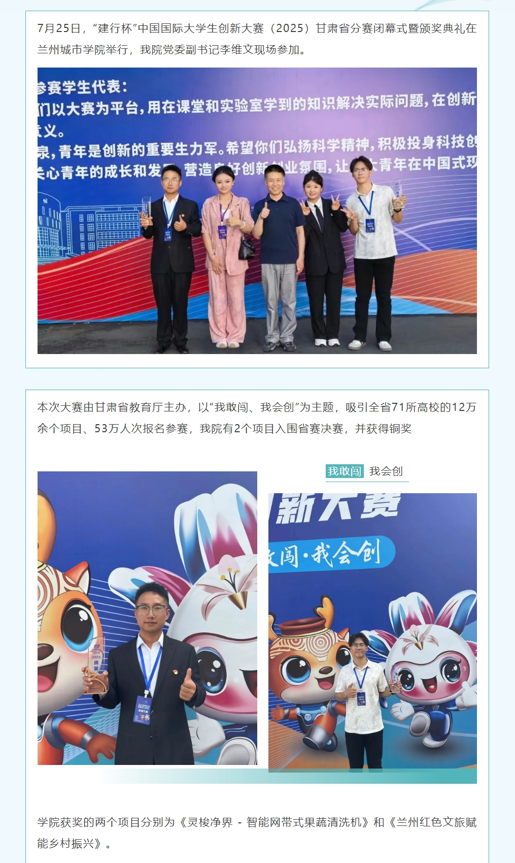 学院学子在中国国际大学生创新大赛(2025)甘肃省分赛中荣获两项铜奖