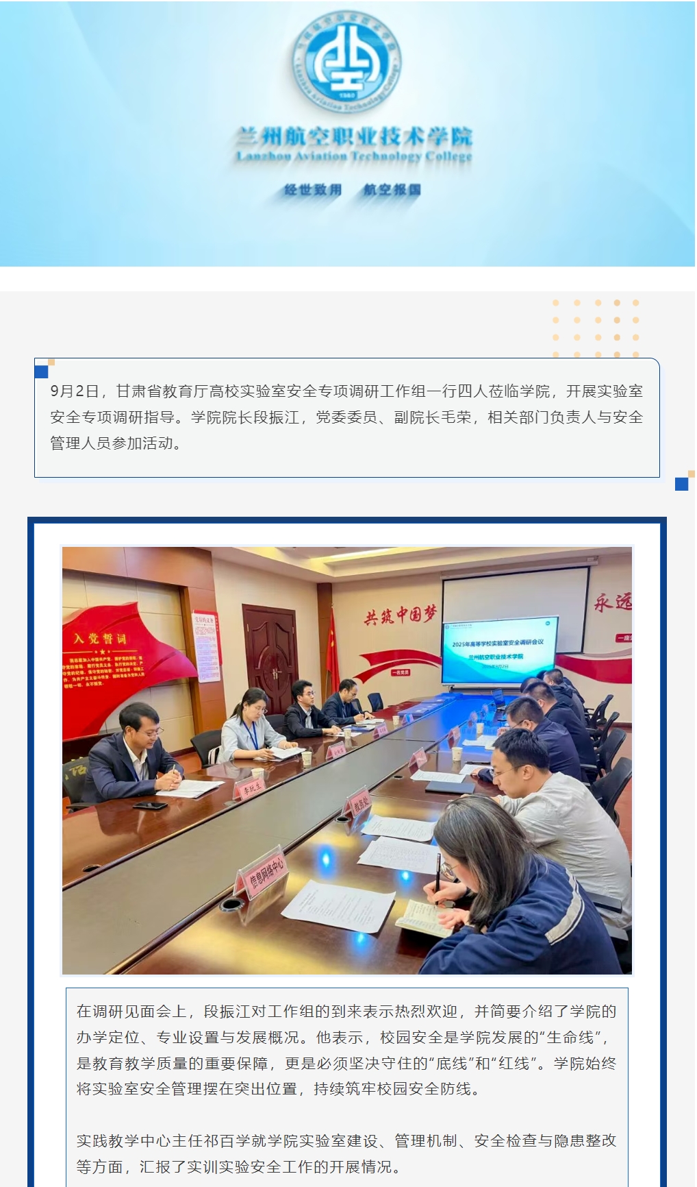 省教育厅实验室安全调研组莅临学院指导实验室安全工作