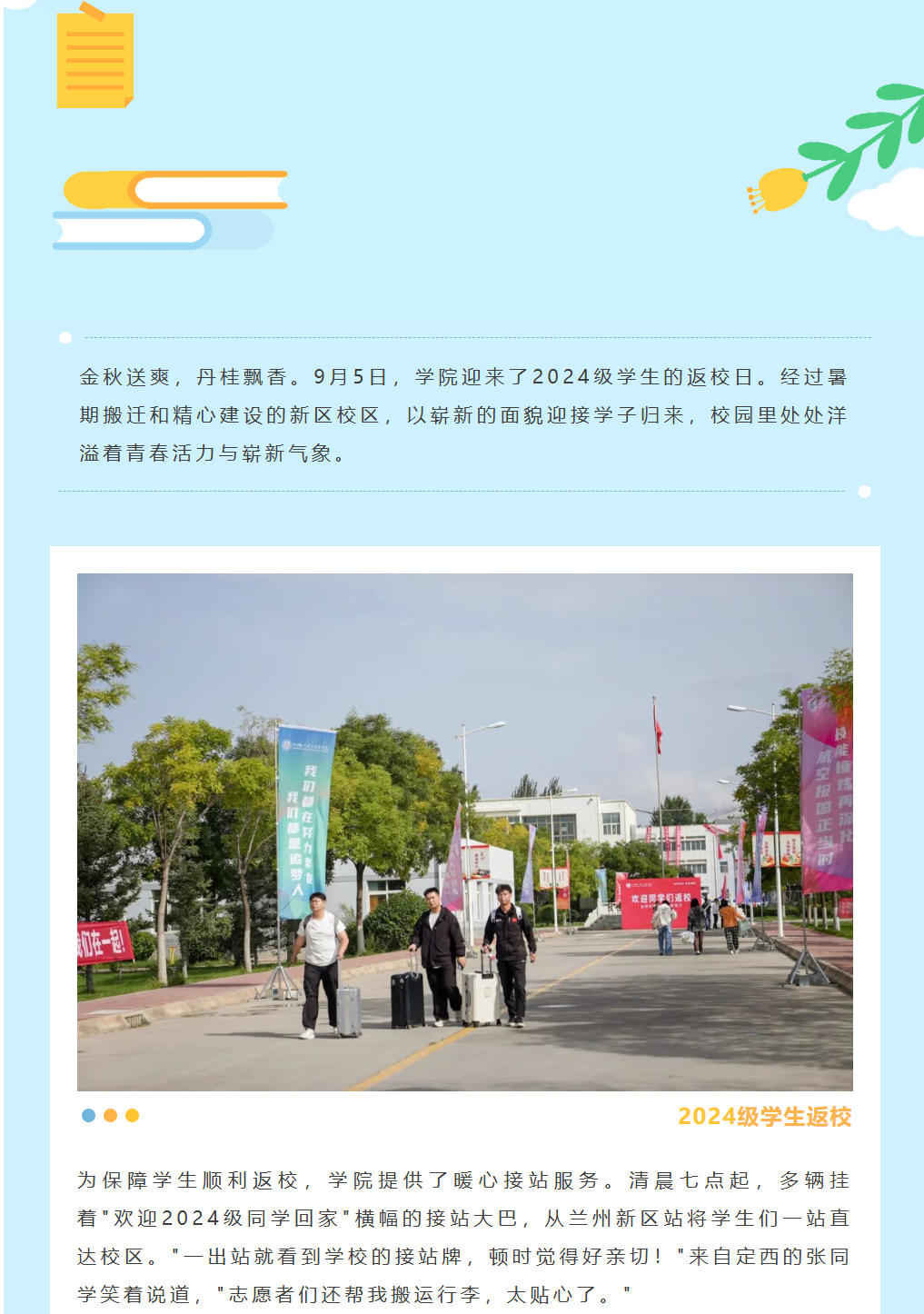 秋日喜迎学子归 校园新境展新篇|学院2024级学生顺利返校