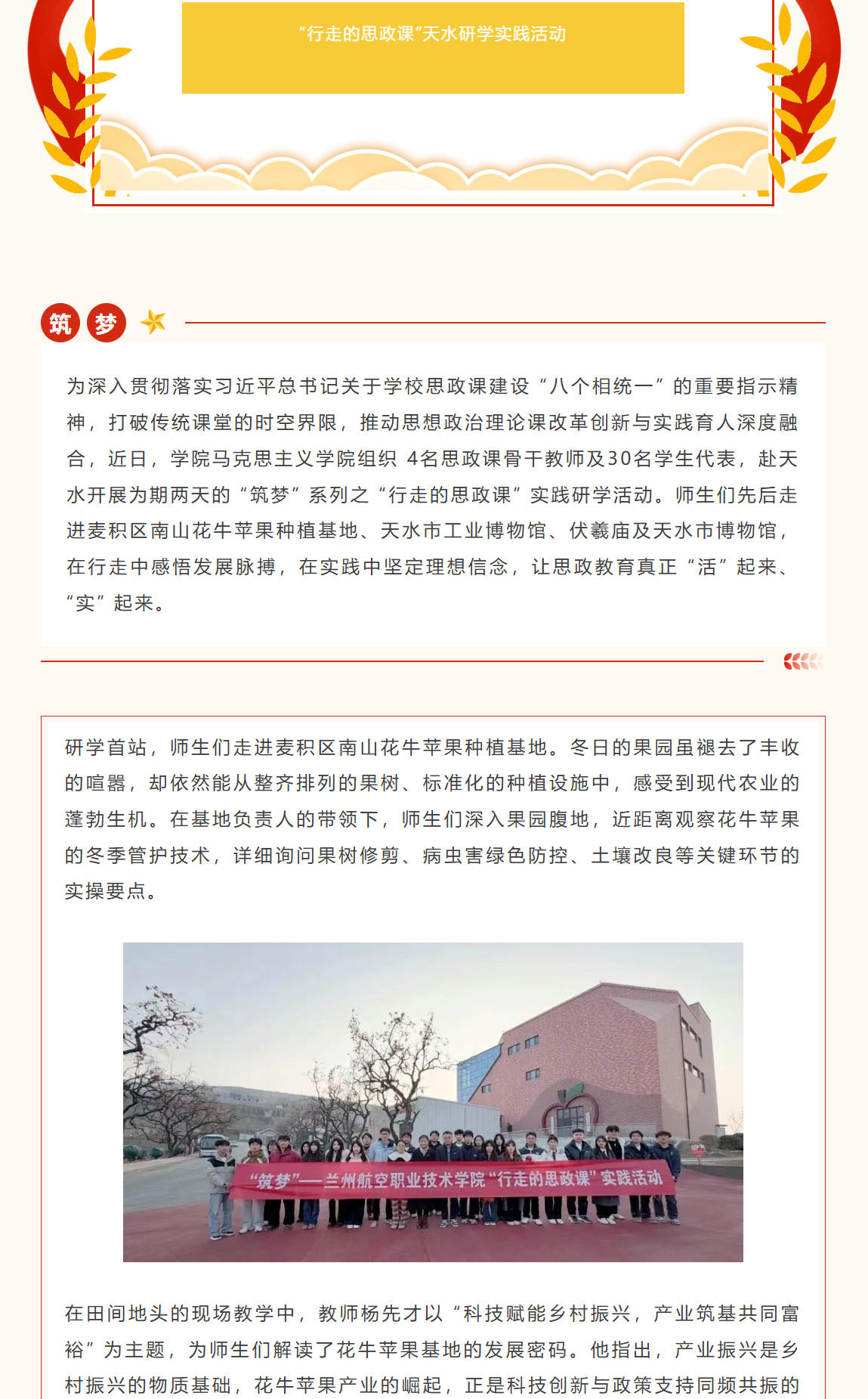筑梦陇原大地 践行青春担当|学院马克思主义学院开展 “行走的思政课” 天水研学实践活动
