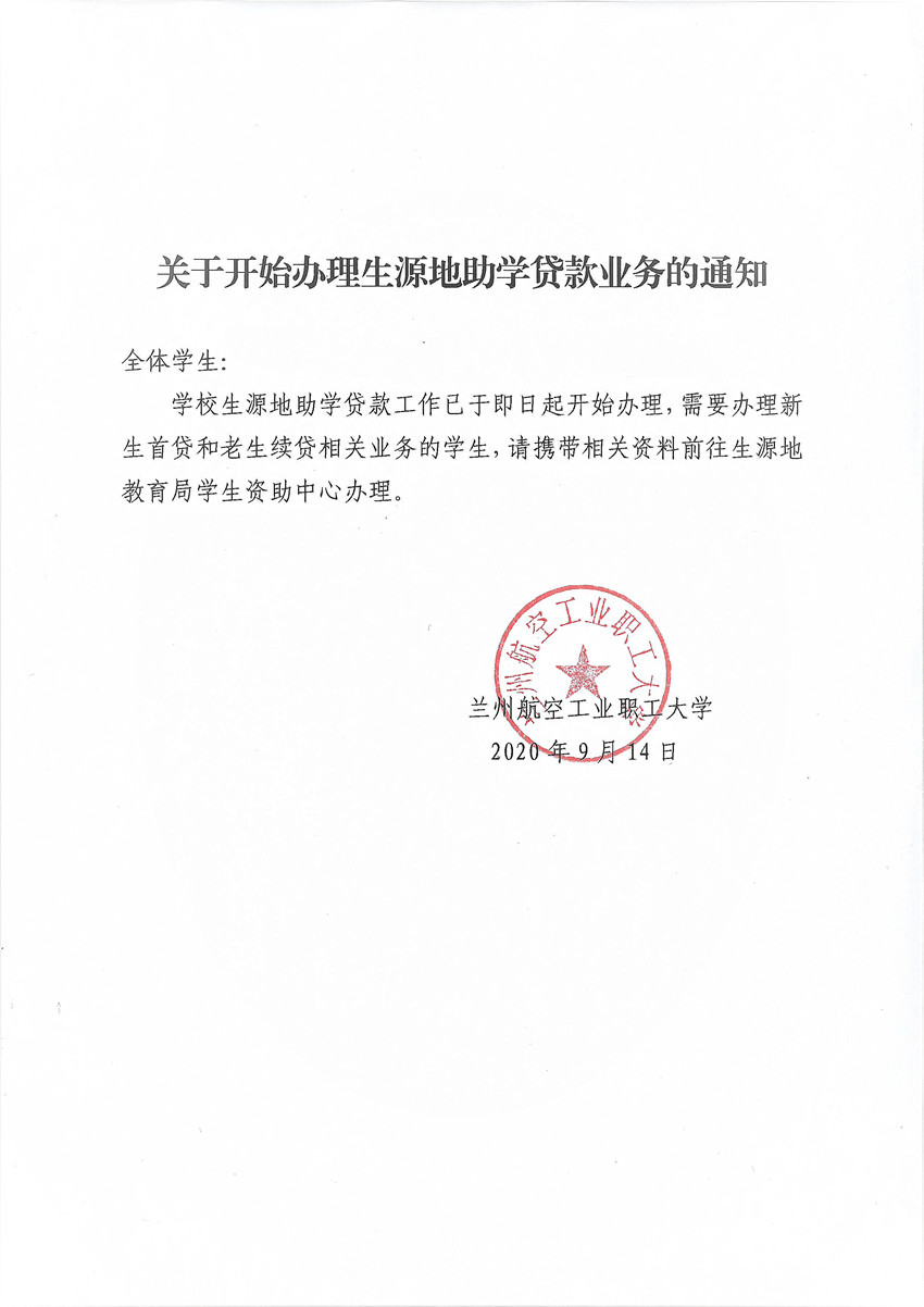 关于开始办理生源地助学贷款业务的通知