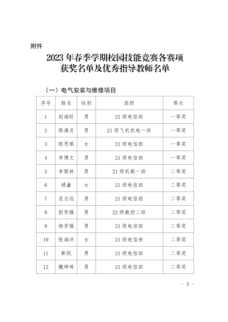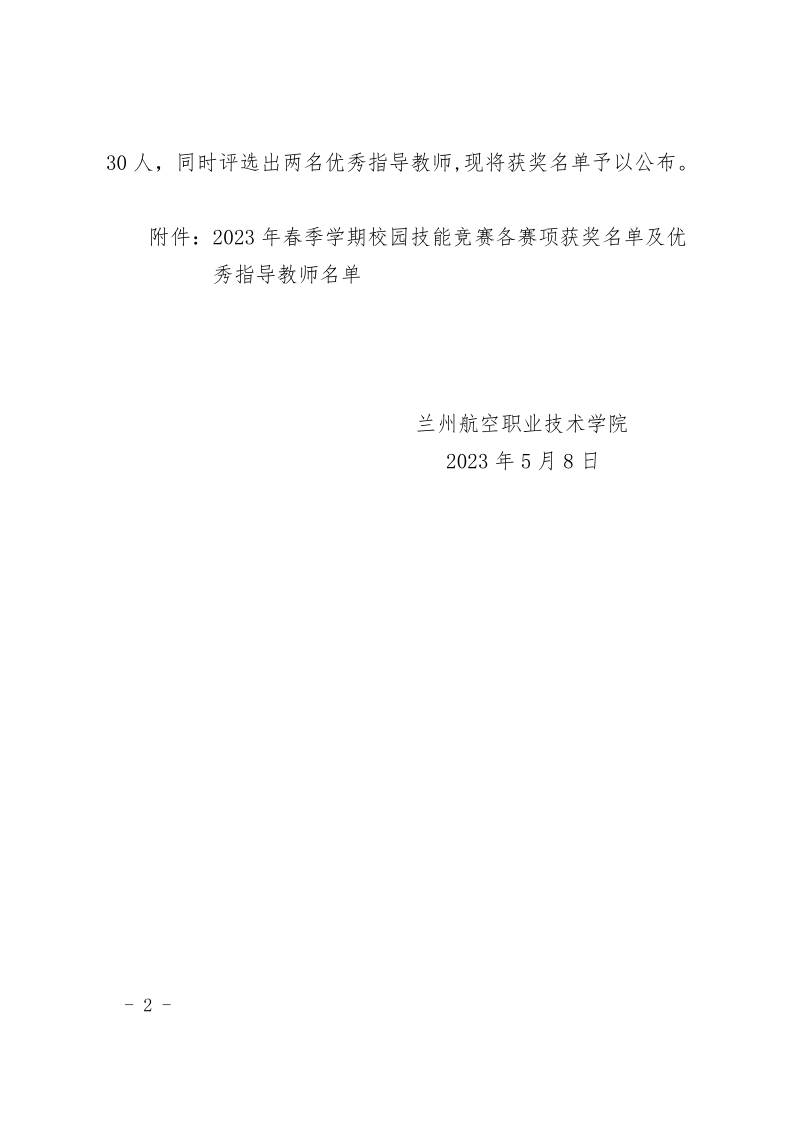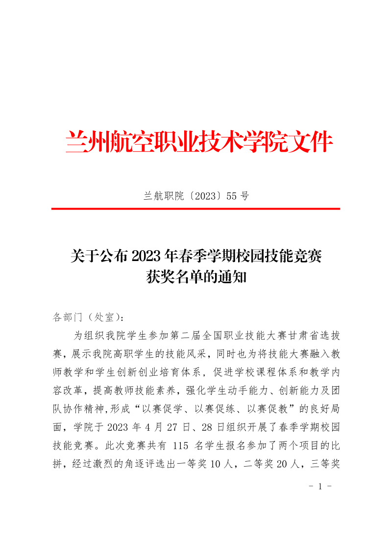 关于公布2023年春季学期校园技能竞赛获奖名单的通知